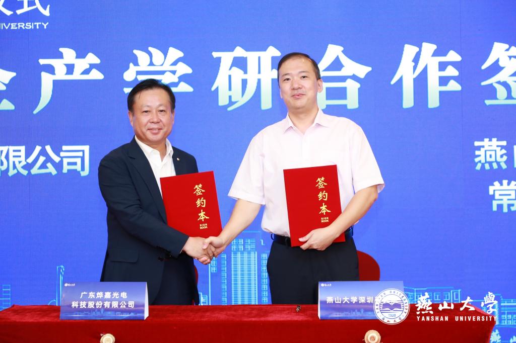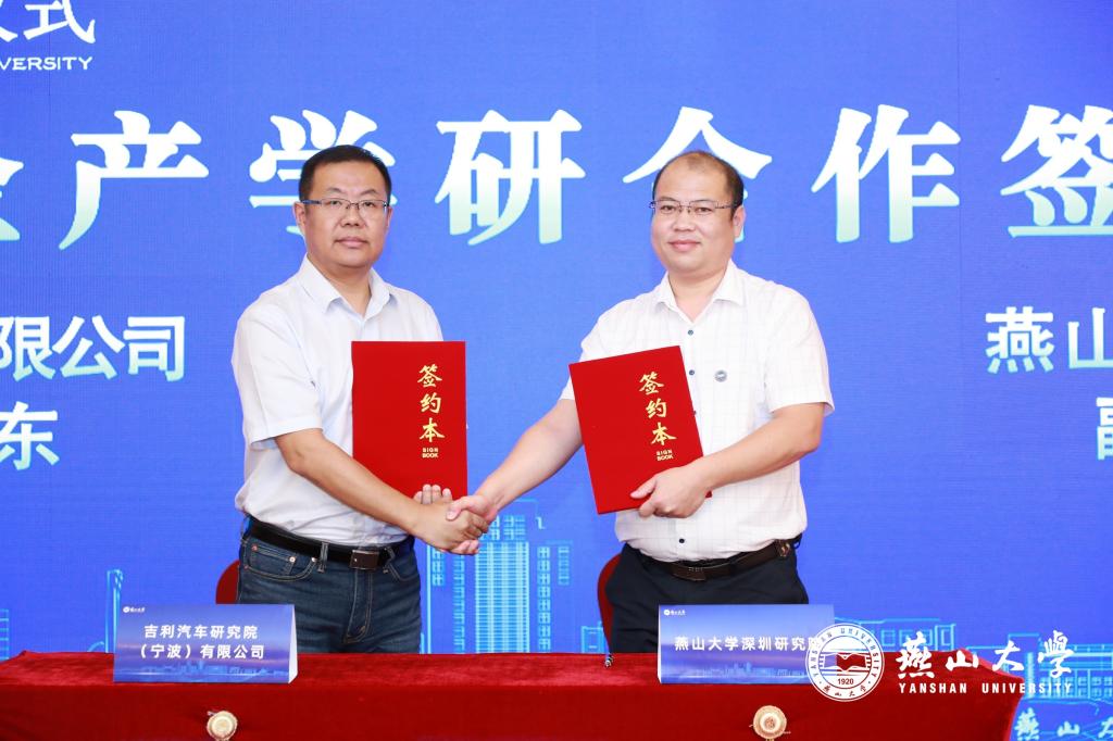 揭牌仪式上,燕山大学深圳研究院与广东烨嘉光电科技股份有限公司、吉利汽车研究院(宁波)有限公司、深圳嘉富诚股权投资基金管理有限公司进行了合作签约。深圳校友会还向研究院赠送了贺联,表达了对研究院的美好祝愿。