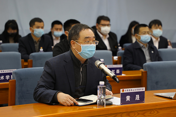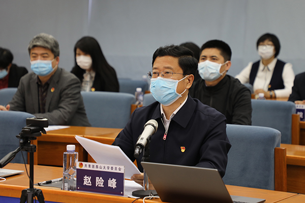 校团委书记薛传佳汇报了疫情期间我校青年学子以各种形式参与抗击疫情志愿服务的情况:我校各级团组织全面落实上级团组织和校党委的工作部署,发扬“党有号召、团有行动”的优良传统,践行“党旗所指就是团旗所向”的要求,团结带领广大团员青年发挥生力军和突击队作用,积极投身疫情防控战场。800余名返乡志愿者主动向乡村、社区、街道报到,309名燕大学子积极响应“与抗疫一线医务人员家庭手拉手专项志愿服务”的号召,一夜之间组建起一支15人的“外语应急志愿服务队”随时准备驰援机场海关,燕大学子把初心和使命扛在肩头,把先锋和表率融入行动中的表现正是对五四精神的继承和发扬,获得了社会各界的肯定。