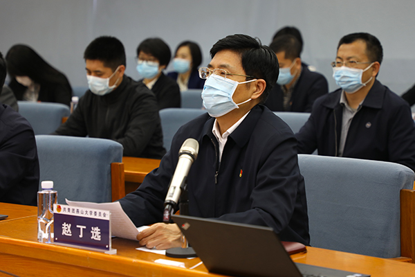 赵丁选在给燕大青年的寄语中向全校广大团员和青年致以节日的问候和美好的祝愿。他说,燕山大学始终把师生生命安全和身体健康放在第一位,以高度的责任感、使命感和紧迫感,坚决打赢疫情防控阻击战,积极投入防控工作,并取得了突出成绩,截至目前尚未发现师生存在新冠肺炎确诊或疑似病例。他还从三个方面赞扬燕大青年在抗疫过程中的突出表现:一是我校各级团组织团结带领广大团员青年发挥生力军和突击队作用,积极投身疫情防控主战场,在抗击疫情行动中展示了我校青年的“五四”精神;二是燕大学子迎难而上,以实际行动上了一堂生动的爱国主义团课;三是燕大学子不负光阴,利用居家学习的宝贵时光提升自我。