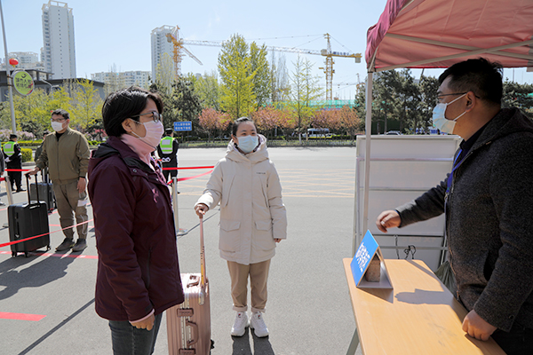 “疫情防控演练开始!” 随着副校长于树江一声令下,由辅导员扮演的“学生”及“家长”乘坐公交车(大巴车)或自驾车到达指定停靠点下车,在现场工作人员指挥下,在资格审核点排队进行返校资格审核。随后,按照入校“一测二核三查四通过”程序,返校学生逐一通过测温门、身份核查处和“河北健康码”查验处。对学生丢失一卡通、出现体温发热症状、学生身份查验异常、“河北健康码”为黄码等突发情况进行了演练。