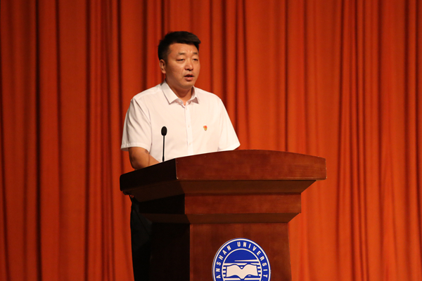 校党委书记赵险峰在会上讲话,他代表学校党委向辛勤工作在一线的全体教职员工致以节日的问候,向受到表彰的先进集体和个人表示热烈的祝贺,向步入工作岗位的新教师表示诚挚的欢迎,向为学校发展做出过重要贡献的老教师、老领导、老同志们致以美好的祝愿。赵险峰表示善之本在教,教之本在师,他衷心感谢了在教书育人、在科学研究、在管理服务等岗位上辛勤付出、默默奉献的一大批优秀教师。他表示上半年,学校成功召开了第四次党代会,确立了新的办学目标、提出了新的奋斗路径和策略措施,蓝图已绘就,奋进正当时,需要全体燕大人扛起时代赋予的责任和使命,撸起袖子加油干。他指出教师作为大学的主体,教师队伍素质直接决定着大学办学能力和水平。建设“双一流”和研究型大学,首先要有一流的教师队伍。他从“要修为师之德,常怀律己之心”;“要增为师之才,具备扎实学识”;“要尽为师之责,潜心教书育人”三个方面勉励大家争当一流教师、更好立德树人,并希望广大教职工发扬燕大人与生俱来的奋斗基因和报国之志,紧握奋斗之桨,高扬奋斗之帆,以一往无前的奋斗姿态,为培养堪当民族复兴大任的时代新人、加快跻身国家“双一流”建设高校行列只争朝夕、砥砺奋进。