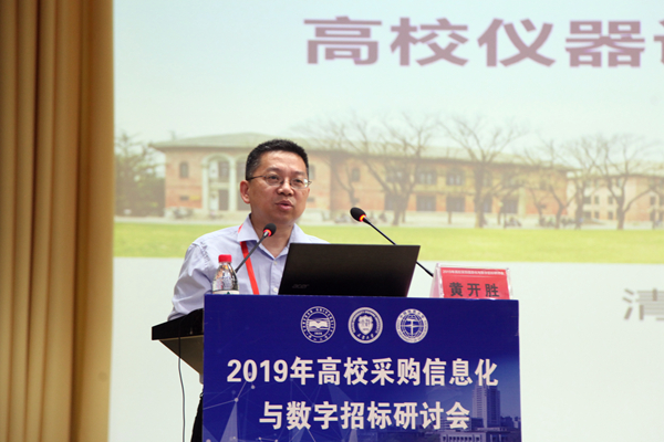 会议共安排四场主题报告,中央国家机关政府采购中心副主任喻立新作了题为《提质增效建平台,业际合作共发展》的主题报告,清华大学实验室与设备处处长黄开胜作了题为《高校仪器设备采购全流程信息化建设》的主题报告,中国地质大学(北京)招标与采购办公室主任王杰作了题为《放管服政策背景下高校政府采购的实践》的主题报告,天津大学招投标管理办公室主任张社荣作了题为《高校数字招标系统研究与实践》的主题报告。