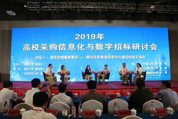 会议组织十名全国知名高校采购领域的专家,特别企划了两场主题论坛。第一场论坛主题为“落实放管服新要求高校采购管理体系优化建设经验交流”,由北京大学实验室与设备管理部副部长周勇义主持,嘉宾为南京大学、中国人民大学、北京科技大学、上海交通大学和大连理工大学等高校采购管理部门负责人;第二场论坛主题为“采购信息化及数字招标创新突破经验交流”,由天津大学招投标管理办公室副主任吴迎新主持,嘉宾为浙江大学、武汉大学、西安交通大学、华南理工大学和电子科技大学等高校采购管理部门负责人。与会嘉宾围绕放管服背景下政府采购制度改革政策及实践、公共预算单位集中采购政策解读及信息化平台建设、高校仪器设备采购全流程信息化建设、高校招标采购信息化建设、高校数字招标系统研究与实践等大家普遍关心的热点话题做了专题发言和探讨交流,并与参会代表进行了现场互动。
