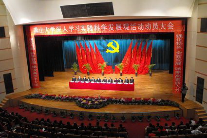 首先,校党委副书记盛婉玉宣读了《燕山大学深入学习实践科学发展观活动实施方案》,方案内容包括:一、指导思想和基本原则;二、目标要求和需要研究解决的主要问题;三,活动安排和方法步骤;四、组织领导。