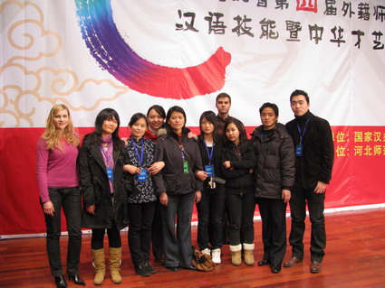 舞台上,我校选手用中文展示着自己的风采,台下,他们用中文自信地与各国选手交流。 为了在本次大赛中取得佳绩,选手们利用休息时间在老师的指导下刻苦练习。经过一个多月的严格训练,他们的语音面貌获得了大幅度的提高,语言运用能力得到了进一步加强,对中国文化也有了更加深入的了解和认识。 尼娜演唱的“南屏晚钟”入选颁奖晚会的录制剧目,晚会将于2009年元旦至春节期间在河北电视台多次播出。(编辑 艾冬梅)