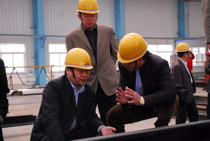 中铁山桥集团有限公司总经理刘恩国、副总经理于保东、总工程师魏云翔等公司领导会见了我校党政领导。刘恩国总经理对我校党政领导的到来表达了热烈的欢迎,并向我校领导介绍了中铁山桥集团有限公司基本情况。孟卫东书记向中铁山桥集团有限公司介绍了此行目的,我校旨在以学习实践科学发展观活动为契机,走访用人单位、收集用人信息,并进一步以学校科研优势服务地方经济,构建校企合作平台。刘宏民校长向中铁山桥集团有限公司介绍了我校基本情况,并提出在技术开发和支持、人才培养、输送毕业生等三方面进行合作的构想。中铁山桥集团有限公司领导在会谈中也表达出同样的愿望。刘宏民校长还向中铁山桥集团有限公司赠送了具有我校办学特色的机械模型纪念品。双方会见以后,我校党政领导还实地参观了中铁山桥集团有限公司历史展室和生产车间。
