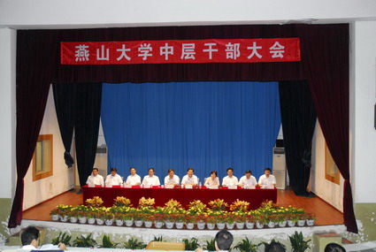 【新闻中心讯】8月25日下午,燕山大学中层干部大会在演讲厅召开。校党委书记孟卫东、校长刘宏民、校党委副书记盛婉玉、副校长杨育林、副校长孔祥东、副校长刘彬、纪委书记潘洪江、副校长张福成、副校长孔令富、校长助理张景超等出席会议。会议由盛婉玉副书记主持。