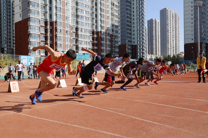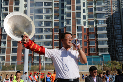 校长刘宏民为本届运动会鸣放第一枪(解丽萍/摄)
