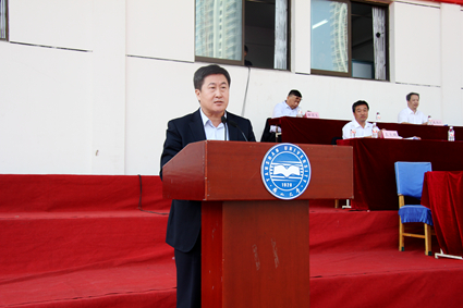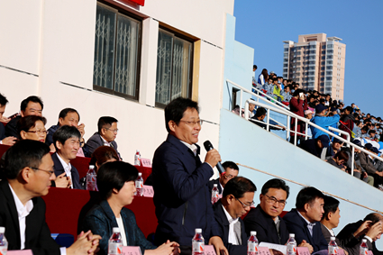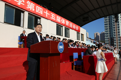 校党委书记孟卫东宣布第四十五届运动会开幕(解丽萍/摄)