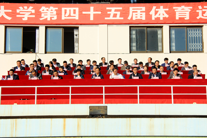 校党委书记孟卫东宣布第四十五届体育运动会开幕。副校长赵永生致开幕辞,他表示我们燕山大学提出了“双一流、双特色”的建设目标,一流大学也应有一流的体育。2013年至2014年,学校投入1200万元改建和新建田径场;2015年至2016年,学校投入415万元用于体育教学科研平台和“学生体质健康测试中心”的建设;2016年学校投入1000余万元进行了东西校区现有篮球、排球、网球场地水泥地面改高品质的塑胶地面工程。高品质运动场地的建设,扮靓了我们的校园,改善了学校的办学条件,为广大师生体育锻炼提供了广阔的空间。体育运动能够强健我们的体魄,健全我们的人格,激发我们的昂扬斗志。体育竞赛的魅力很大程度上在于它既充满挑战又崇尚公平。他希望全体运动员本着“重在参与”的奥林匹克精神,争取更快、更高、更强,努力赛出风格、赛出水平,争取运动成绩和精神文明的双丰收。