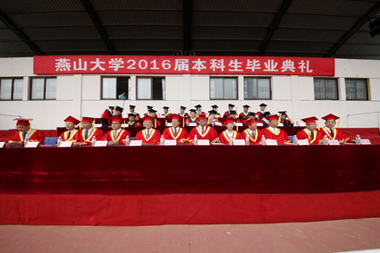 【新闻中心讯】6月29日上午9:00,燕山大学2016届本科生毕业典礼在东校区第二体育场举行。孟卫东、刘宏民、陈春利、盛婉玉、孔祥东、张福成、孔令富、谢延安、赵永生、刘爱民、黄晟、赵丁选等校领导出席典礼。相关职能部门和学院负责人、辅导员、13个学院的3700余名本科毕业生以及部分学生家长共同参加了典礼。典礼由学生工作处处长张明莉主持。