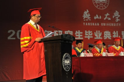【新闻中心讯】6月26日上午,燕山大学2016年研究生毕业典礼暨学位授予仪式在东校区大学生活动中心举行。孟卫东、刘宏民、盛婉玉、孔祥东、张福成、孔令富、谢延安、王宝诚、刘爱民、黄晟、赵丁选等校领导和相关学院负责人出席了典礼。毕业典礼由研究生院院长官英平主持。