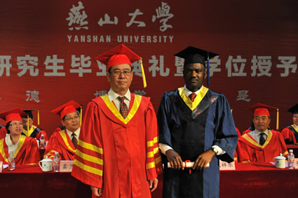 校长刘宏民教授为博士学位获得者拨流苏并合影留念