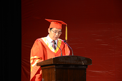 孔祥东副校长和张福成副校长分别宣读了燕山大学研究生毕业文件和学位授予文件,赵丁选副校长宣读了《中共酒泉市委组织部致燕山大学的感谢信》。王亚薇同学代表毕业生衷心地感谢辛勤培育他们的母校和老师,并决心用所学知识回报母校、回报社会。环境与化学工程学院院长、博士生导师高发明教授代表研究生导师对即将走出校园的毕业生寄予临别赠言,希望他们坚定信念,追求梦想,坚持学习,积极向上,关心母校发展,开创人生新的画卷。