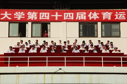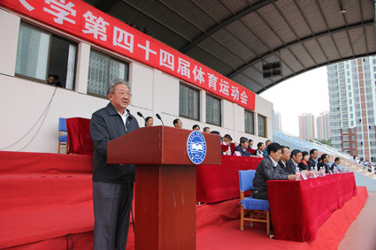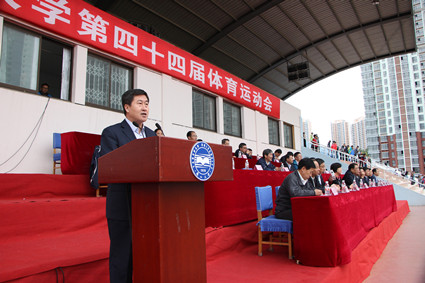 校党委书记孟卫东宣布第四十四届体育运动会开幕。副校长赵永生致开幕辞,他表示增强学生体质是学校人才培养工作的重要组成部分,学校始终把大学生的身心健康放在重要的工作位置,在办学经费比较紧张的条件下,投资800多万元将东西校区运动场地水泥地面改成高品质的塑胶地面运动场地,他还简要介绍了我校一年来在体育方面取得的各项成绩,他希望全校师生把体育运动当成一种习惯,积极参加运动会,充分展示团队和个人的强大实力和昂扬向上的精神风貌,把本次大会办成一次积极、向上、健康、快乐的体育和文化盛会。