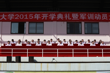【新闻中心讯】9月7日上午9点,我校2015级新生开学典礼暨军训动员大会在东校区第二体育场举行。校领导班子成员及各学院领导出席了典礼。典礼由学生工作处处长张向前主持。