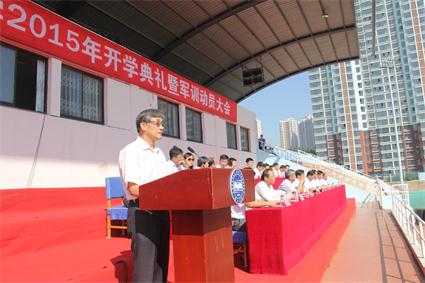校长刘宏民在开学典礼讲话中对2015级新生的到来表示热烈的欢迎和衷心的祝贺。他表示,值抗战胜利70周年之际,同学们要铭记历史,珍惜今天这来之不易的幸福生活,希望同学们要胸怀理想并志存高远;坚守价值并笃定信念;铭记责任并勇于担当;学会热爱并富有激情,敦促同学们一定要珍惜大学这美好而宝贵的青春年华。