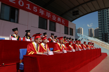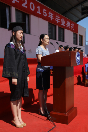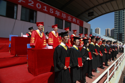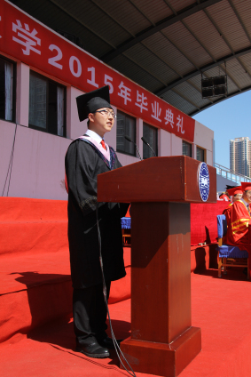 伴随着庄严的国歌声,毕业典礼开幕。副校长赵永生宣读了2015届学生毕业和授予学士学位的决定,副校长孔祥东为来自各学院的26名毕业生代表授予了学位。