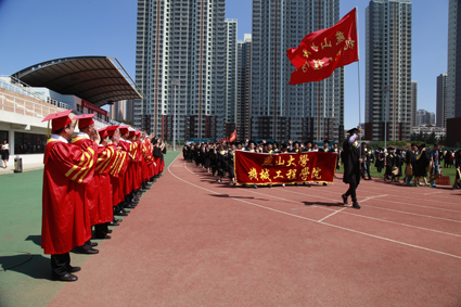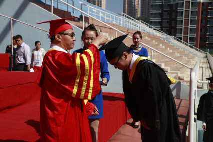 最后,全体校领导走下主席台到操场跑道与毕业生挥手道别,很多校友眼眶湿润,依依不舍地向母校的领导、老师告别。毕业典礼在艺术学院毕业生陈希、暴晓萱满怀深情的《明天会更好》、《梨花又开放》、《再见》歌声中圆满结束。(编辑/褚玉晶)