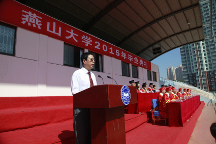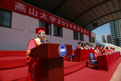 【新闻中心讯】7月1日上午9:00,燕山大学2015届本科生毕业典礼在东校区第二体育场举行,3824名圆满完成学业的本科毕业生即将从这里踏上人生新的征程。孟卫东、陈春利、盛婉玉、孔祥东、张福成、孔令富、谢延安、张景超、赵永生、王宝诚、黄晟等校领导及学院领导出席了本次毕业典礼。典礼由学生工作处处长张向前主持。