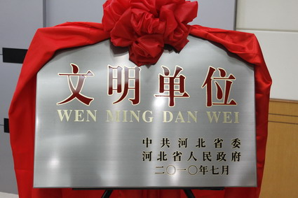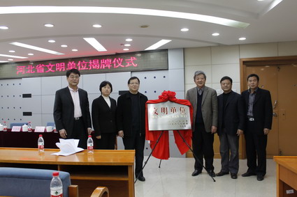【新闻中心讯】11月4日,我校在世纪楼报告厅举行“河北省2008-2009年度文明单位”揭牌仪式,这是从2000年开始我校连续3次获得 “省级文明单位”荣誉称号以来,第四次获得这一殊荣。河北省国防科工局副局长陈树志,我校党委副书记陈春利、盛婉玉,我校党委常委、宣传部部长杨晓峰等领导出席了揭牌仪式。