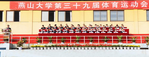 【新闻中心讯】9月29日上午7:50,燕山大学第三十九届体育运动会在东校区第二体育场开幕。校党委书记孟卫东、校长刘宏民,校党委副书记陈春利、盛婉玉,副校长杨育林、孔祥东、刘彬,纪委书记潘洪江,副校长邢广忠、张福成、孔令富,校长助理张景超、刘文远,校党委常委、宣传部部长杨晓峰等校领导出席了开幕式,学校老领导和各学院、各部门负责人也参加了开幕式。