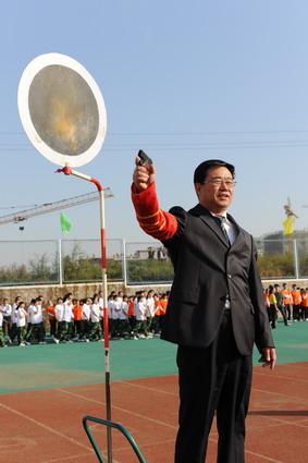开幕式上,裁判员代表程家滨和运动员代表管有卓分别代表裁判员和运动员宣誓。刘宏民校长为运动会比赛鸣放第一枪。