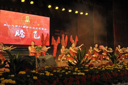 校庆文艺演出分为“欢庆”、“丰碑”、“青春”、“风采”、“腾飞”五个部分。通过歌舞、朗诵、合唱、现场采访等丰富多彩的形式,全方位地展现了我校师生的精神风貌。晚会现场播放的专题片《燕大故事》令观众产生了强烈的情感共鸣,专题片重温了几代燕大人披荆斩棘、不懈努力的历史,再现了我校90年来的办学历程和发展成就。