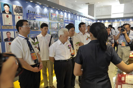 周铁农副委员长在为我校建校90周年校史展览揭幕后,在我校领导与各位领导、嘉宾的陪同下还现场参观了燕山大学建校90周年校史展览的全部内容。展览以时间为纵轴,以燕山大学独立办学的50年历程为重点,以翔实的图片资料真实地再现了燕山大学建校90周年的历史足迹与辉煌的办学成就。展厅还以实物形式展出了周铁农副委员长为我校的题词和他当年留在东重图书馆的借书证等一大批珍贵的校史资料。周铁农副委员长为母校的发展感到由衷的高兴,并在参观完展览后,再次为我校题词:“放眼未来,更上层楼”,对我校未来的发展寄托了殷切的希望。