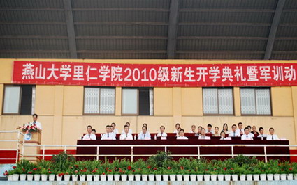 开学典礼过后2010级新生军训动员大会随即举行。燕山大学武装部部长、学生工作处处长张向前宣读了燕山大学武装部《关于对里仁学院2010级学生进行军事训练并成立军训团的决定》;里仁学院常务副院长于恩林向军训团授团旗;里仁学院党委书记张红兵做军训动员;中国人民解放军海军驻燕山大学后备军官选拔培养办公室主任何宗发大校发表讲话。