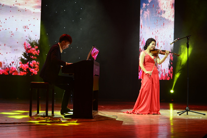 【新闻中心讯】12月26日晚7:00,燕山大学“花开中国年共圆中国梦”2015年新年晚会在东校区大学生活动中心举行。孟卫东、刘宏民、陈春利、盛婉玉、孔祥东、谢延安、张景超、赵永生、王宝诚、刘爱民等校领导及部分学校老领导出席了晚会,河北外国语职业学院党委书记杨晓峰及部分校友代表也应邀观看了演出。