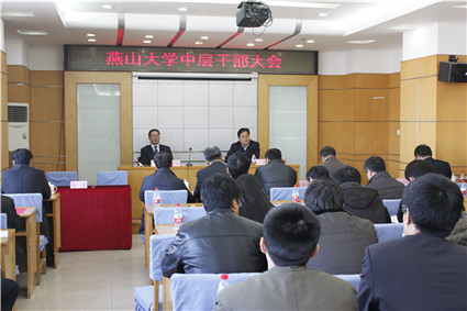 【新闻中心讯】3月7日下午,我校2011年春季学期中层干部大会在世纪楼21层第一会议室召开。校领导孟卫东、刘宏民、陈春利、杨育林、刘彬、潘洪江、邢广忠、孔令富、张景超、杨晓峰和学校中层干部参加了大会。大会由校党委书记孟卫东主持。