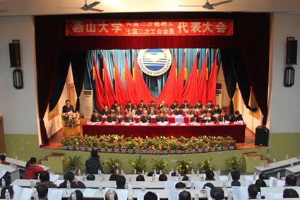 【新闻中心讯】1月8日,燕山大学六届二次教职工暨七届二次工会会员代表大会在东校区第二教学楼讲演厅隆重召开。来自学校不同工作岗位的12个代表团的210名正式代表以及列席代表、特邀代表济济一堂,共商学校改革、发展大计。孟卫东、刘宏民、陈春利、盛婉玉、孔祥东、刘彬、潘洪江、邢广忠、张福成、孔令富、张景超、刘文远、杨晓峰等校党政领导在主席台就座。
