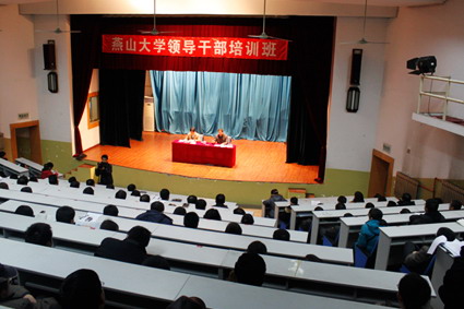 【新闻中心讯】1月6日下午2点30分,我校2010年干部培训班第四次集中培训在东校区第二教学楼演讲厅举行。校长刘宏民以《燕山大学“十一五”发展概况与“十二五”规划展望》为主题为全校科级以上干部进行了专题讲座。副校长杨育林、张福成、孔令富,校长助理张景超、刘文远,校党委常委、宣传部部长杨晓峰等在校领导班子成员出席了培训会。培训会由组织部部长王宝诚主持。
