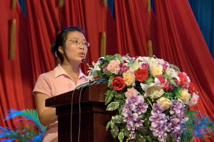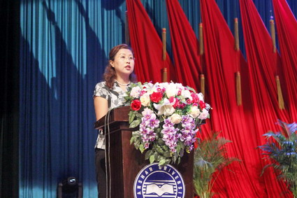 学生党员马翠敏同志代表优秀共产党员发言(杜崇杰 摄)