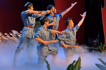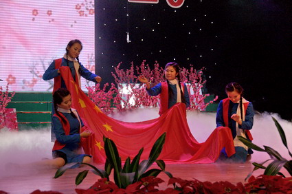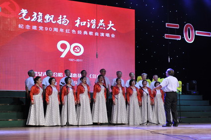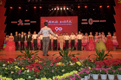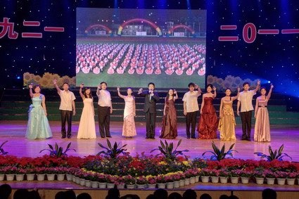 校领导与演员合唱《没有共产党就没有新中国》(姜文超 摄)