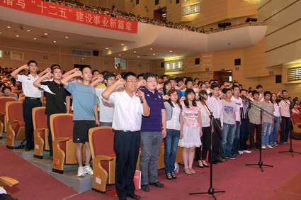 学校各党委、党总支、党群各部门负责人,全校科级及以上干部,教职工、学生党支部书记,先进集体代表和优秀个人以及教职工、学生、离退休党员代表也到会观看了表演。(编辑 艾冬梅 姜文超)