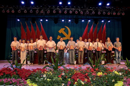 表彰大会在国歌声中拉开帷幕,全体新党员进行了入党宣誓。刘宏民校长宣读了学校党委的表彰决定,大会对先进党支部、优秀党务工作者、优秀共产党员进行了表彰。学校党政领导班子成员为先进党支部、优秀党务工作者、优秀共产党员代表颁奖。机械工程学院机电控制工程系党支部姜万录同志代表先进党支部发言,图书馆党总支书记丁华同志代表优秀党务工作者发言,教工党员魏黎波同志和学生党员马翠敏同志代表优秀共产党员发言。