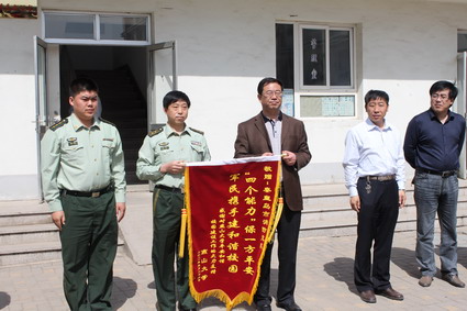 校长刘宏民向秦皇岛市消防支队赠送锦旗(赵伟云 摄)