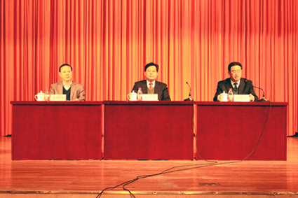 校党委书记孟卫东代表校领导班子进行大会述职(朱可嘉 摄)
