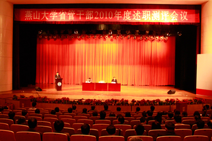 【新闻中心讯】根据中共河北省委组织部《关于做好省属本科院校省管干部2010年度考核工作的通知》要求,4月21日下午2点30分,我校在东校区大学生活动中心召开了燕山大学省管干部2010年度述职测评会议。会议由校长刘宏民主持,省委组织部干部二处正处级巡视专员李树海代表省委组织部出席会议。