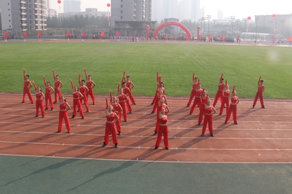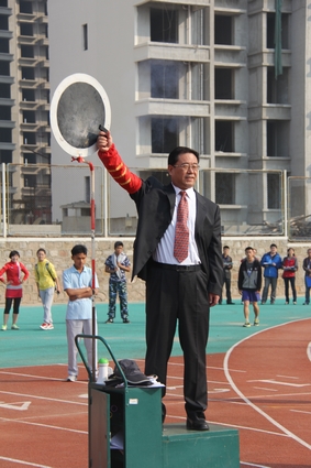 在精彩的开幕式展演和广播体操表演后,刘宏民校长为首场比赛鸣放了第一枪,四十二届运动会比赛正式开始。
