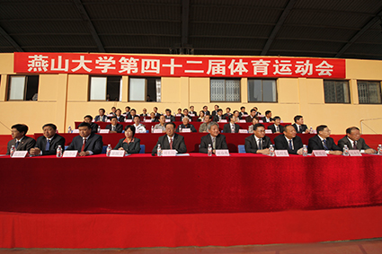 【新闻中心讯】9月28日上午8:00,燕山大学第四十二届体育运动会在东校区第二体育场开幕。刘宏民、陈春利、盛婉玉、孔祥东、孔令富、谢延安、张景超、赵永生、王宝诚、刘爱民等领导出席了开幕式。在两天的赛程中,来自全校22个单位的1000余名运动员将参加包括趣味运动赛在内的53个比赛项目。