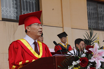 校长刘宏民在典礼上致辞,他代表学校向圆满完成学业的3746名本科生和4名本科留学生表示热烈的祝贺,并向几年来辛勤工作、精心育人的老师们表示衷心的感谢。同时,刘宏民校长还对毕业生提出了三点希望:志存高远、立志报国,担负历史责任;终身学习、学以致用,继续努力奋斗;学会感恩、用心生活,收获精彩人生。