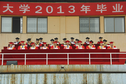 【新闻中心讯】6月29日下午4:30,燕山大学2013届本科生毕业典礼在我校第二体育场举行,孟卫东、刘宏民、盛婉玉、孔祥东、张福成、孔令富、谢延安、赵永生、王宝诚、刘爱民等校领导及相关学院领导出席了本次毕业典礼。典礼由学生工作处处长张向前主持。