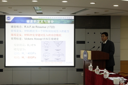 刘宏民校长向国家自然科学基金委员会领导介绍了我校的发展历史,并就我校的科研机构、科研成果和实力、科研优势领域等方面进行了重点介绍。田永君教授向国家自然科学基金委员会领导介绍了亚稳材料制备技术与科学国家重点实验室以及自己所带领科研团队的概况,并重点就“超细纳米孪晶结构的超硬材料”研制情况进行了详细阐释。