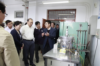 【新闻中心讯】5月9日上午,国家自然科学基金委员会主任杨卫、副主任高瑞平等一行6人来我校调研,对亚稳材料制备技术与科学国家重点实验室及田永君教授主持完成的“超细纳米孪晶结构的超硬材料”研究成果进行考察。