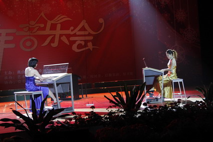 刘霞、温婉玉表演的双排键电子琴重奏《北京喜讯传边寨》