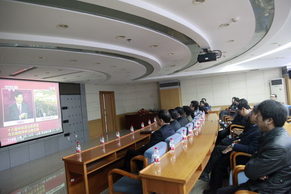 校党委中心组成员收看新一届中共中央政治局常委同中外记者见面会现场直播(蔡常山 摄)