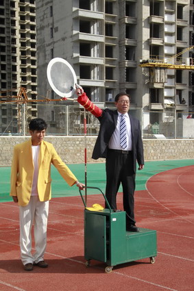 校长刘宏民为运动会的比赛项目鸣放第一枪(朱可嘉 摄)